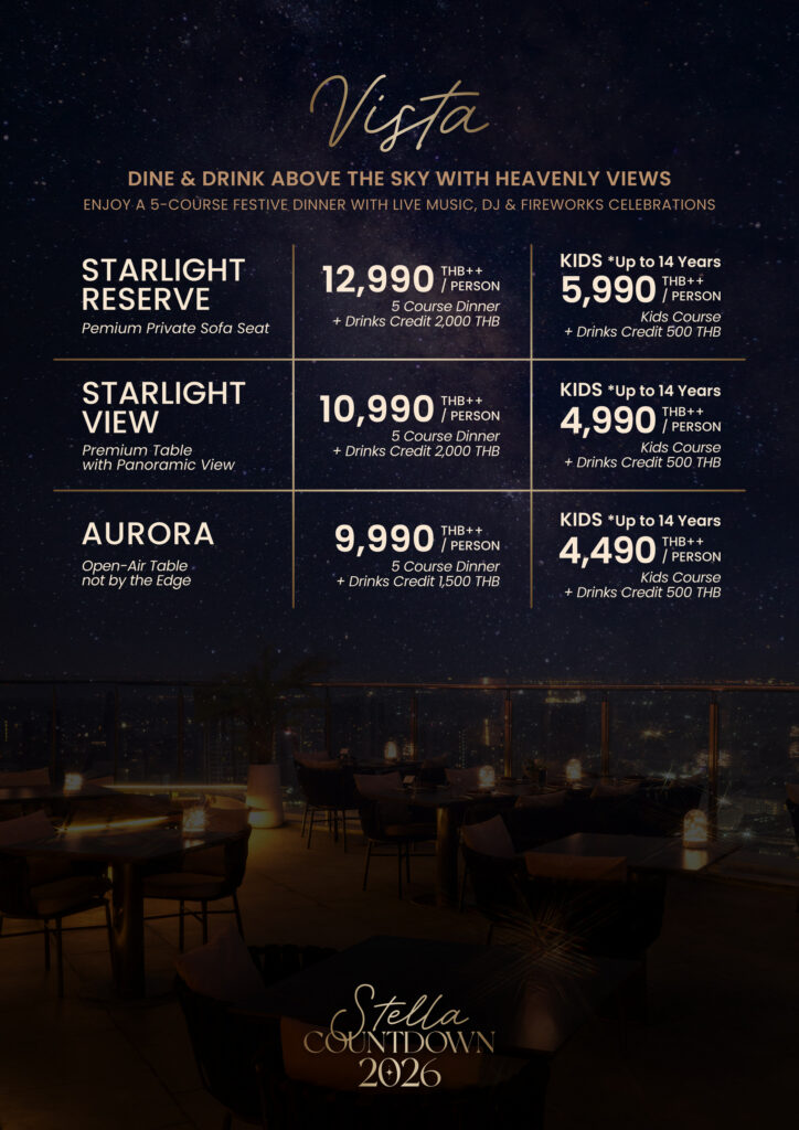 Say goodbye to 2025 under the starlit Bangkok sky and celebrate an unforgettable night at Cielo Sky Bar & Restaurant.