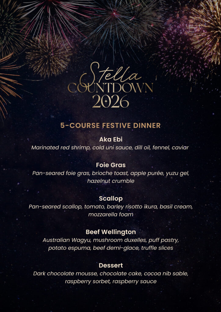 Enjoy a 5-Course Festive Dinner, Live Music & DJ, and spectacular fireworks celebrations with a 360° Panoramic View.